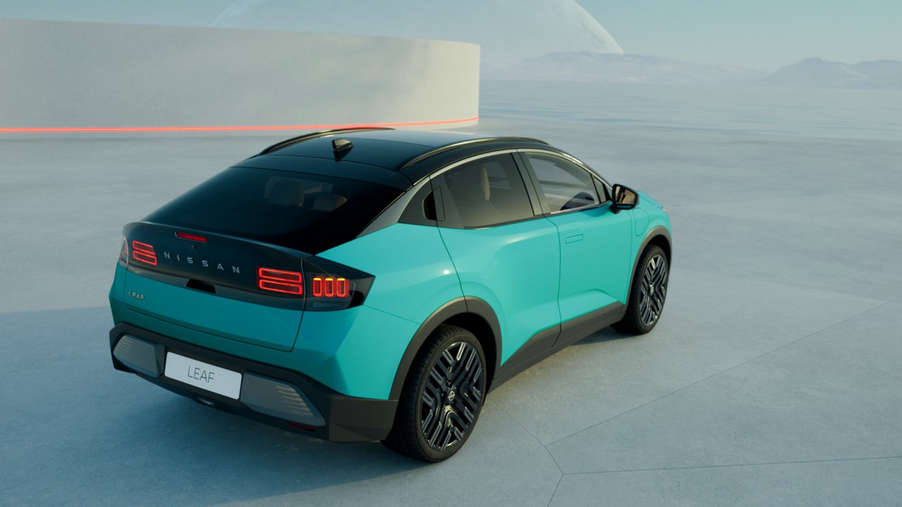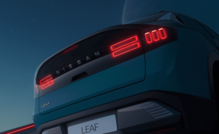 3D zadní světla se ohýbají kolem vozu Nissan LEAF a dodávají mu futuristický vzhled.